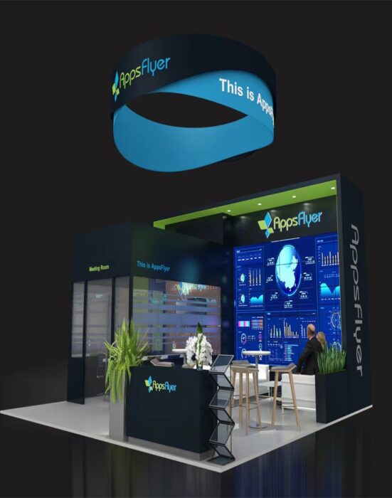 Appflyer 20′ x 20′ MAU Custom LED Video Wall Booth Design