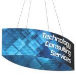 The xyzDisplays Formulate Capsule Illuminated Hanging Tension Fabric Graphics Backlit Banners for trade show exhibits are a must have at your next trade show. These extra large hanging banners are enable you to been seen from practically anywhere at your trade show. Available in round, square, and triangle configurations as well as numerous sizes.