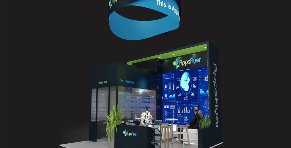 Appflyer 20′ x 20′ MAU Custom LED Video Wall Booth Design