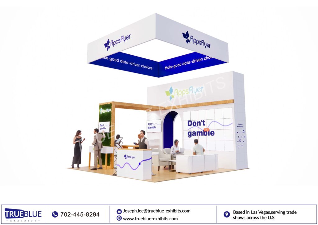 Unveil your brand’s potential at Las Vegas trade shows with TrueBlue Exhibits’ captivating 20′ x 20′ MAU booth design for AppsFlyer in 2024. Our expert team combines innovative concepts with premium craftsmanship to create an immersive brand experience that captivates visitors. Elevate your presence on the show floor with seamless integration of technology, striking visuals, and strategic layout. Trust TrueBlue Exhibits to showcase AppsFlyer’s unique identity and message, driving engagement and leaving a lasting impression. Stand out from the crowd and maximize your trade show success with our unparalleled expertise in booth design and fabrication.