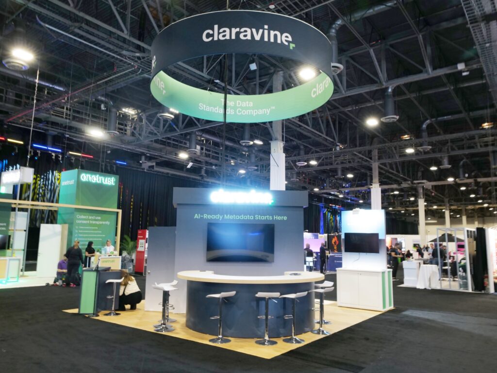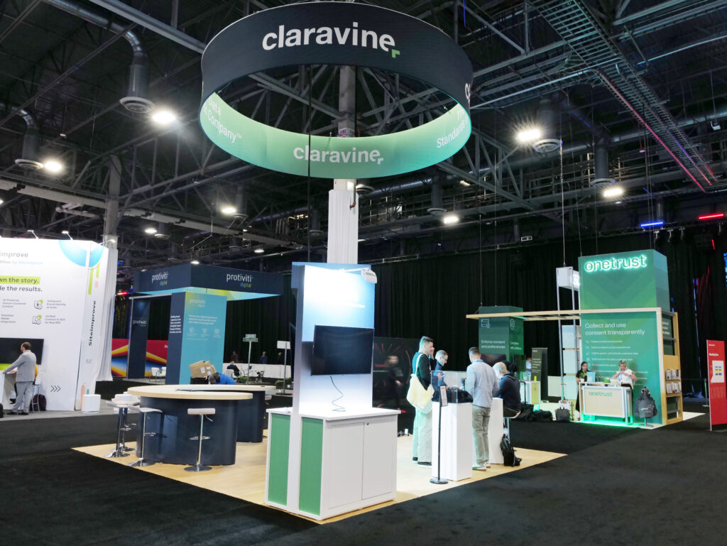 TrueBlue Exhibits presents the Claravine 20’ x 20’ Adobe Summit exhibit design, a cutting-edge trade show booth that enhances brand visibility and engagement. Featuring a sleek, modern layout, interactive displays, and high-impact visuals, this booth is designed to attract and captivate attendees. With strategic space utilization and innovative design elements, the exhibit fosters meaningful connections while showcasing Claravine’s industry-leading solutions. Optimized for functionality and aesthetic appeal, this exhibition booth maximizes brand storytelling at the Adobe Summit. Trust TrueBlue Exhibits for expertly crafted trade show displays that deliver a powerful presence and leave a lasting impression on event audiences.