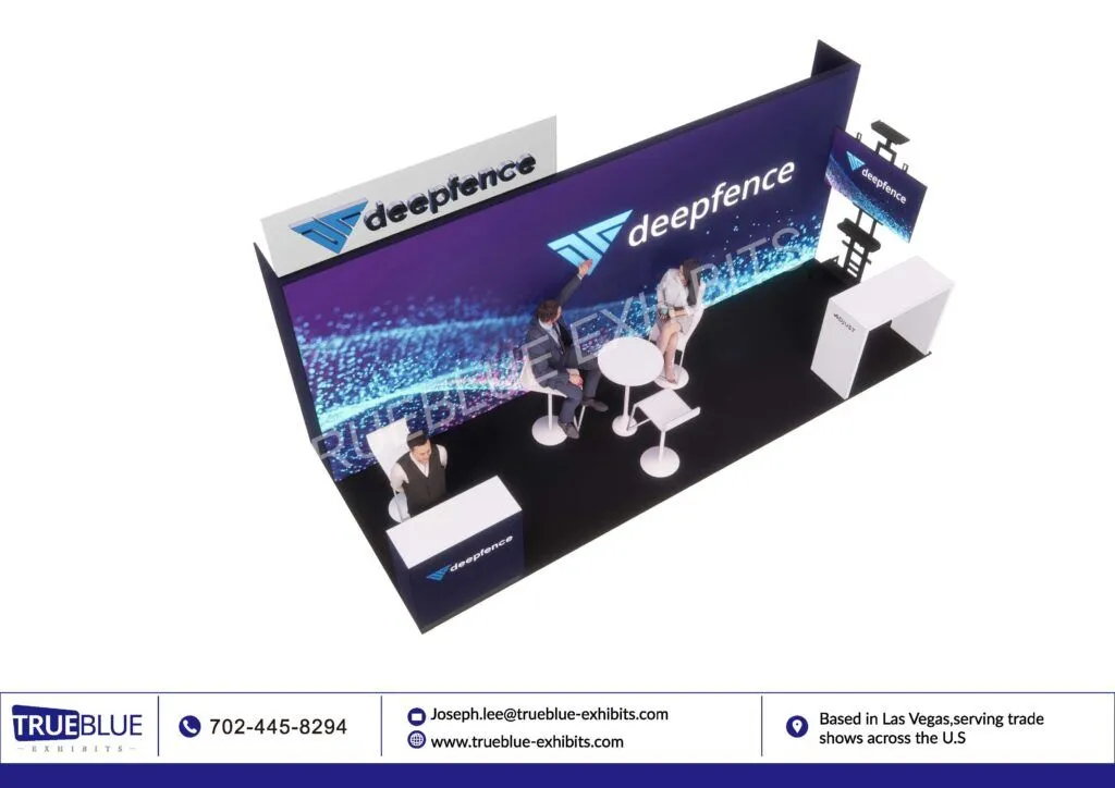 TrueBlue Exhibits specializes in designing, building, and delivering 10′ x 20′ trade show booth and graphic design. Our custom trade show displays and exhibits feature turnkey services, including in-house fabrication, transportation, professional installation, and dismantle to seamlessly blend function and visual appeal for our clients in Las Vegas or nationwide. To learn more, contact us for a free consultation.