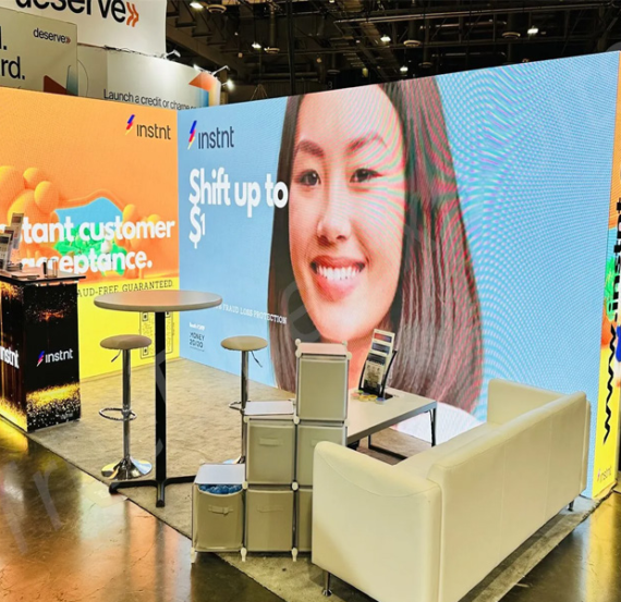 TrueBlue Exhibits offers a high-impact Exhibition Booth Circular Hanging LED Video Wall Rental solution, designed to captivate audiences and boost brand visibility. This circular hanging LED video wall delivers vibrant, 360-degree visuals, making it ideal for exhibition booths looking to stand out. Positioned overhead, it attracts attention from all angles without using valuable floor space, allowing for seamless audience flow and engagement. TrueBlue’s circular LED walls are available in various sizes and resolutions, customizable to meet brand specifications. With expert installation, design support, and technical assistance, TrueBlue ensures a flawless setup and captivating display that leaves a lasting impression.