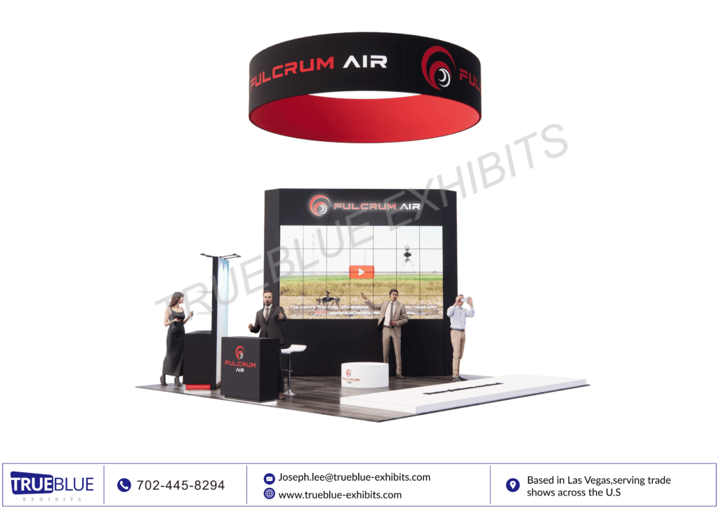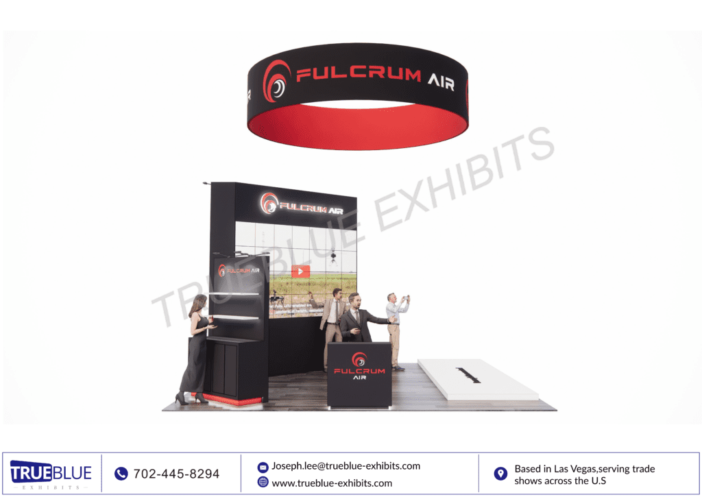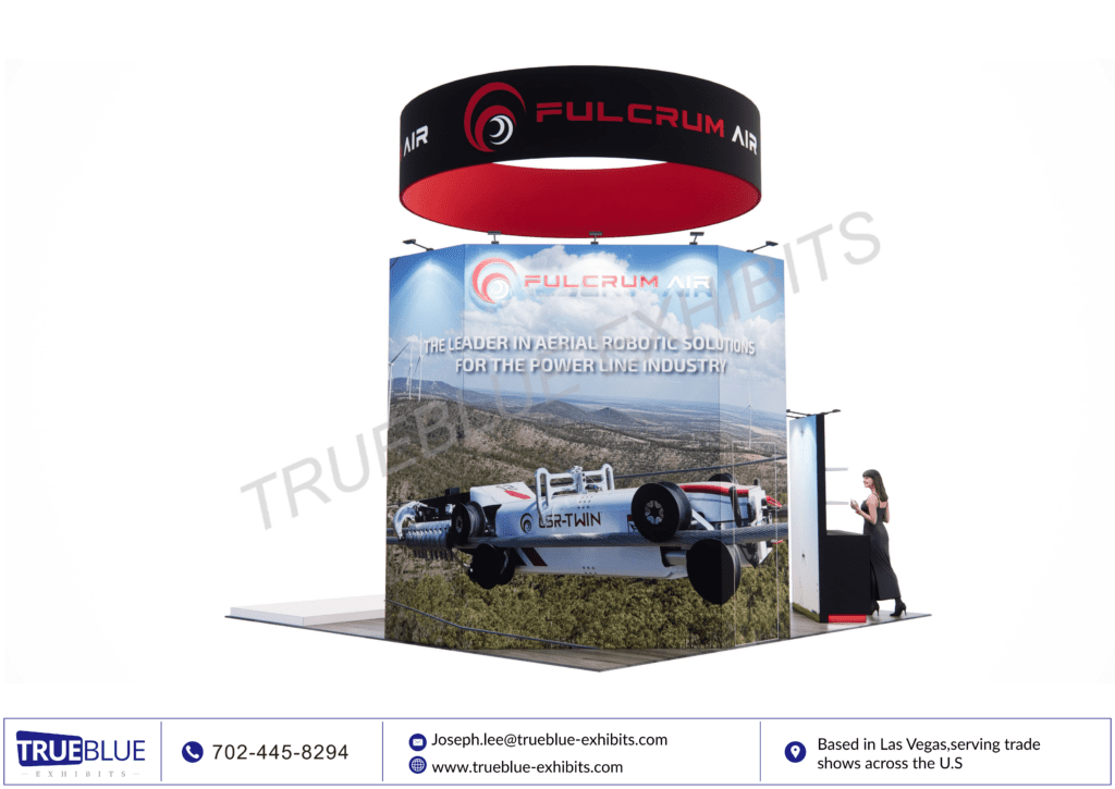 FulcrumAir presented an eye-catching 20′ x 20′ LED video wall trade show booth at DISTRIBUTECH International with the help of TrueBlue Exhibits. It was a high-quality modular LED video wall display that provided an immersive experience. It caught the attention of everyone at the trade show. Clean lines of architectural design, cutting-edge lighting solutions, and smooth graphics helped in communicating the technology and message of FulcrumAir. TrueBlue Exhibits offered a full range of trade show booth rental services covers lower 48 states.