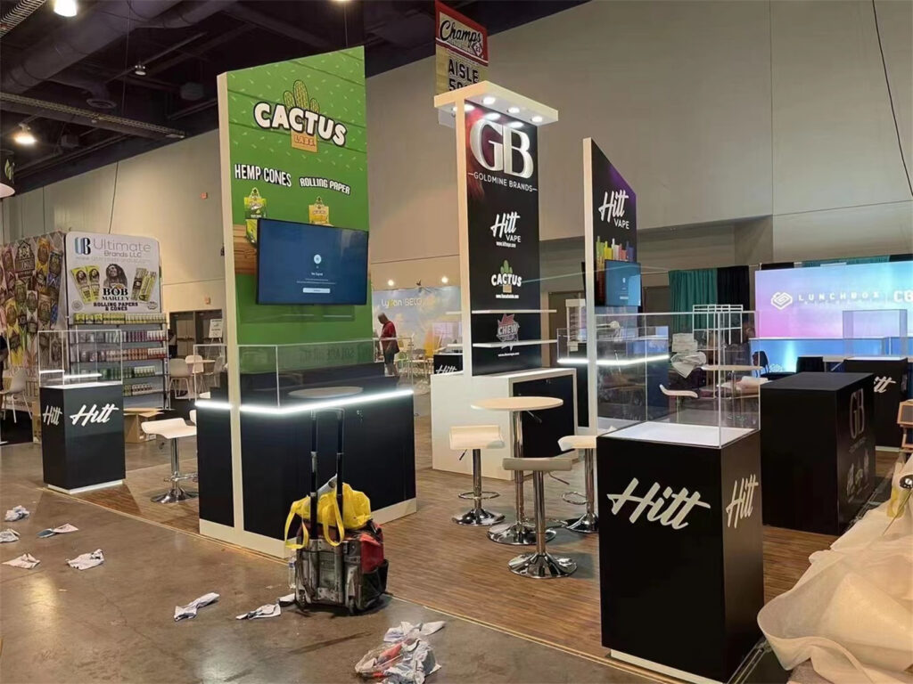 TrueBlue Exhibits provides our clients with turnkey services across the US, including in-house trade show exhibits fabrication, transportation, installation, and dismantle. We bring you closer to your trade show booth design ideas for all your trade show needs. To know more about our 20’ x 20’ custom trade show booth designs, get in touch with us.