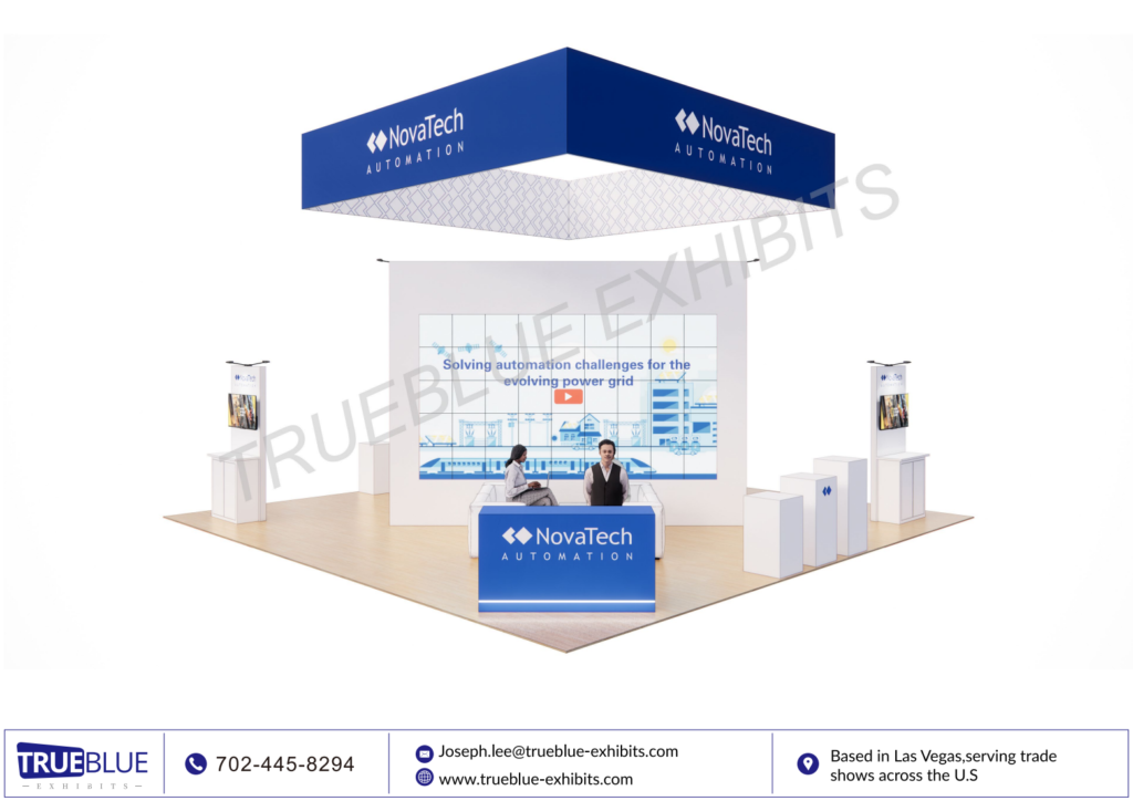 Looking for a standout 30′ x 30′ custom exhibit rental for Distributech in Dallas? NovaTech partnered with TrueBlue Exhibits to create a bold, high-impact booth that blends sleek design with practical functionality. This custom rental booth maximizes space for product demos, client meetings, and brand storytelling—all without the hassle of owning. TrueBlue’s team delivered a turnkey solution that was on-brand, on-time, and on-budget. Whether you’re a tech company like NovaTech or just want to make a strong impression at Distributech, TrueBlue Exhibits offers rental solutions that feel fully custom. Elevate your presence and connect with confidence with TrueBlue team today!