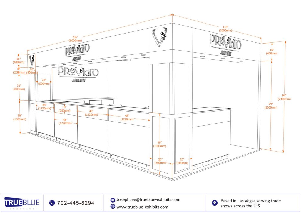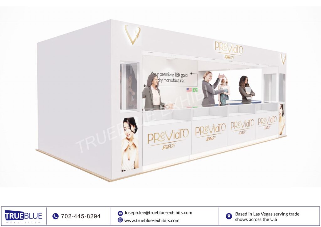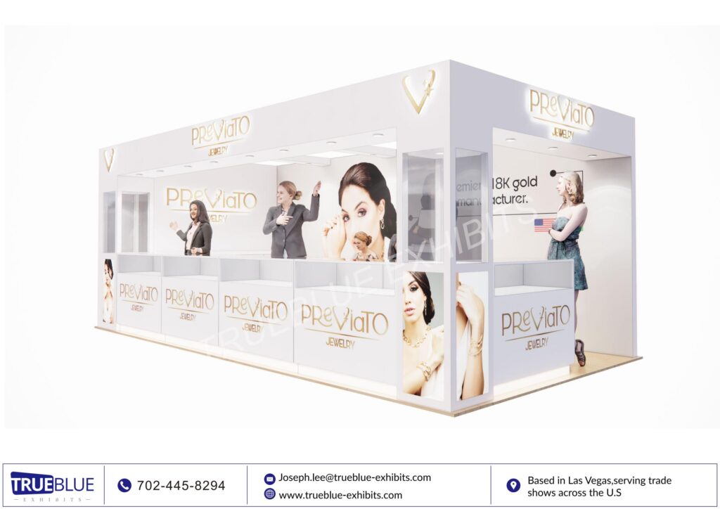 Looking to make a sparkling statement at JCK 2024? Previato Jewelry has partnered with TrueBlue Exhibits to unveil a show-stopping 10′ x 20′ custom exhibit rental. Elevate your brand presence with a design tailored to your unique vision. TrueBlue Exhibits specializes in creating immersive experiences that captivate and engage attendees, ensuring your booth stands out amidst the crowd. From sleek modern aesthetics to luxurious finishes, your exhibit will embody the essence of your brand. Don’t miss this opportunity to showcase your finest jewels in style. Contact TrueBlue Exhibits today to elevate your brand presence at trade show floor.