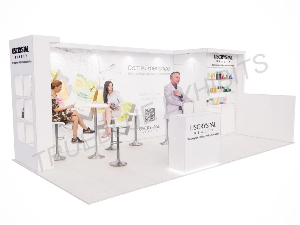 Cosmoprof North America Trade Show Exhibit Design & Rental by TrueBlue Exhibits offers stunning, brand-focused booth solutions tailored for the beauty and cosmetics industry. We create custom trade show exhibits that blend stylish design with functional layouts, helping your brand captivate attendees and showcase products effectively. From vibrant graphics to interactive displays, every detail is crafted to enhance engagement and brand recognition. TrueBlue Exhibits provides complete services, including design, fabrication, shipping, installation, and dismantling, ensuring a seamless experience. Based in Las Vegas, we serve clients nationwide, delivering premium exhibit rentals that make a lasting impression at Cosmoprof North America.