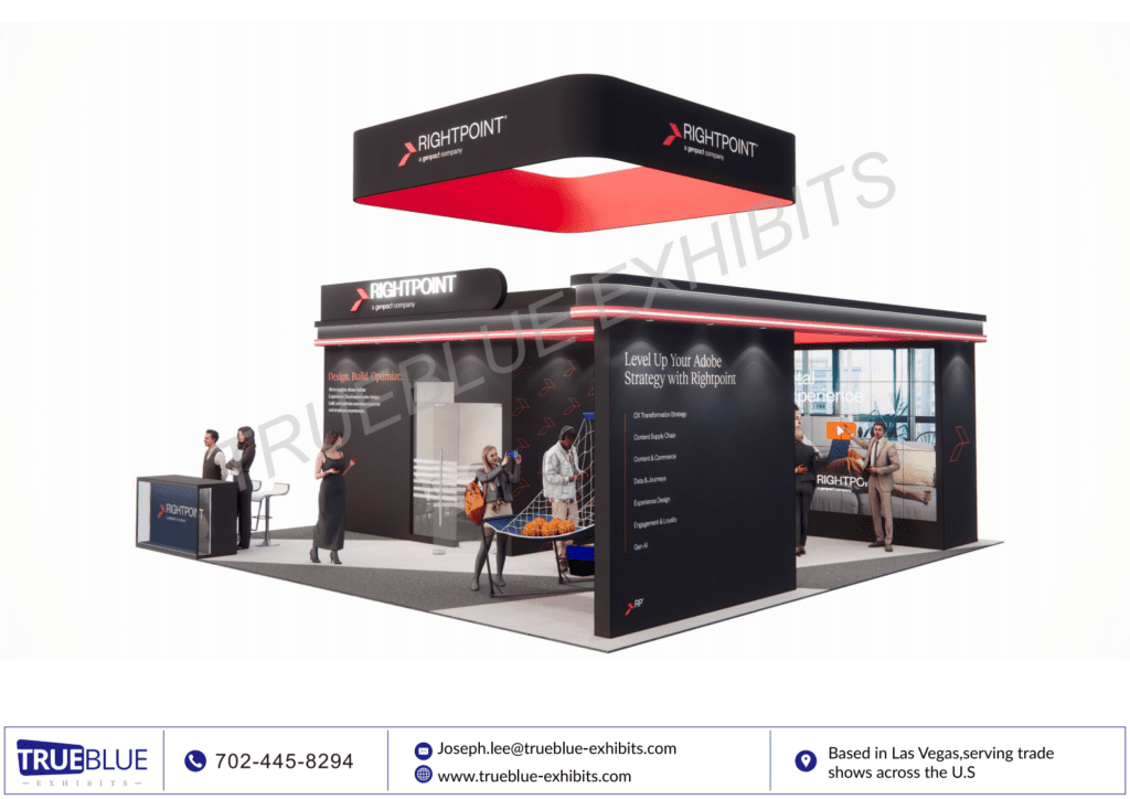 TrueBlue Exhibits has developed a groundbreaking 30’ x 30’ exhibition booth design for Rightpoint at the Adobe Summit, designed to engage audiences and enhance brand visibility. The contemporary and sophisticated design features interactive displays, vibrant lighting, and captivating graphics, ensuring a memorable experience for attendees. This meticulously designed booth improves event marketing by promoting genuine connections and highlighting advanced technology. The innovative layout maximizes space and optimizes traffic flow, making each interaction significant. Tailored for the Adobe Summit, this booth combines outstanding visual appeal with practicality, establishing Rightpoint as a frontrunner in innovation and trade show excellence. Experience unmatched impact with every strategic engagement.