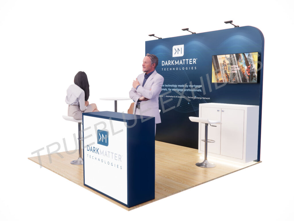 TrueBlue Exhibits is the go-to trade show booth design company providing 10′ x 10′ rental trade show booths for Las Vegas and nationwide trade shows. Our high-quality booths can be tailored to your specific business needs. Contact us today for in-house exhibit fabrication, graphic production, furnishing rental, transportation, installation, and dismantle turnkey services.