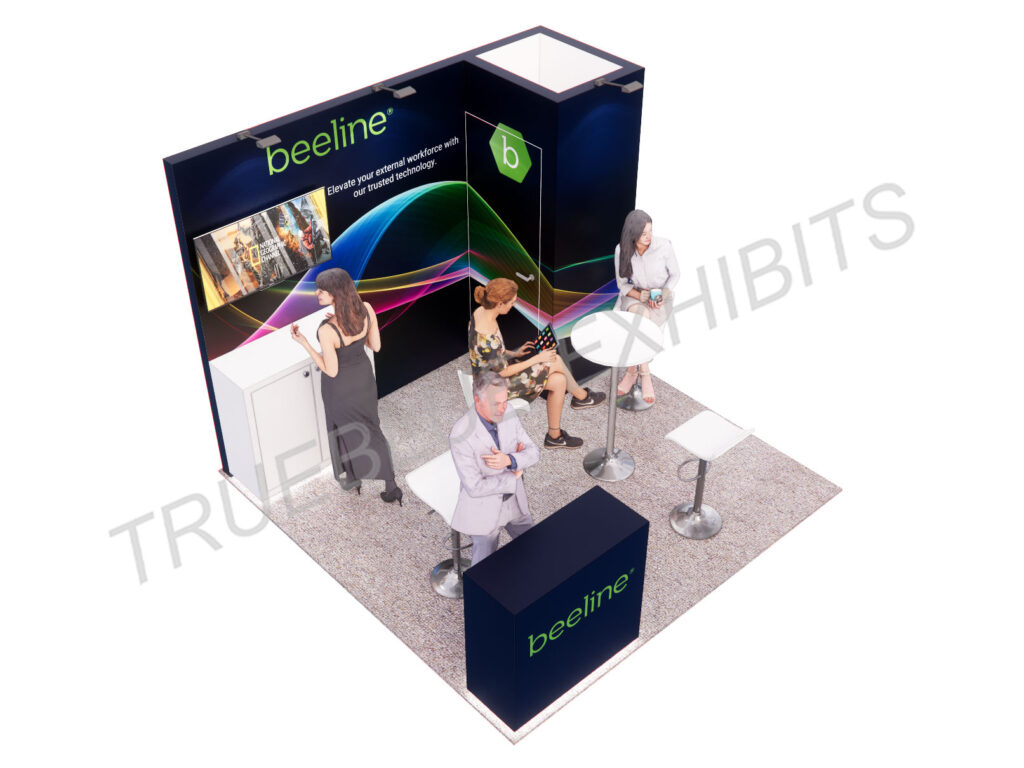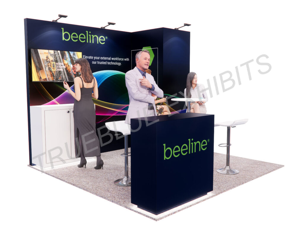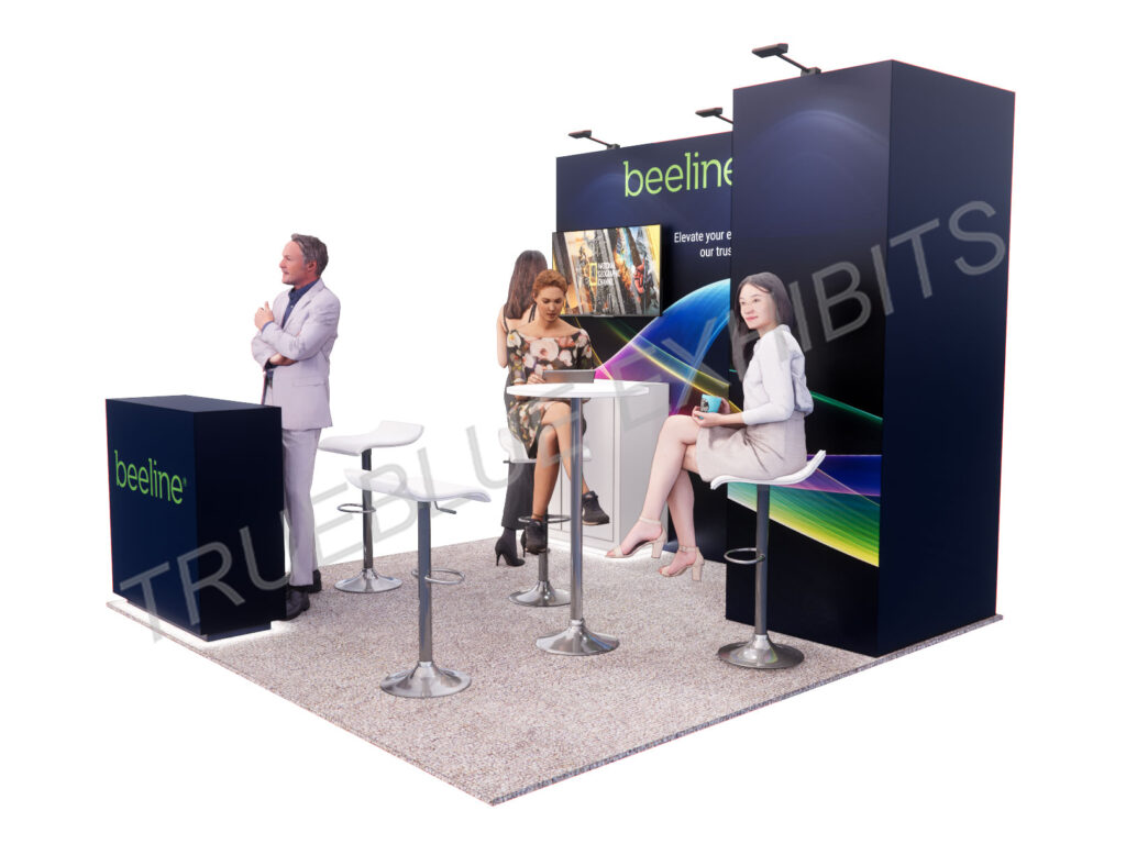 TrueBlue Exhibits can design unique booth designs for trade shows that meet your marketing requirements by providing custom rental exhibits in Las Vegas or nationwide. Our high-quality exhibit fabrication is followed by our other turnkey services, including transportation, installation, and dismantle, ensuring a seamless process from start to finish. Contact us to get in touch with our sales representative.