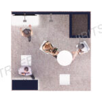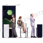 The T3 trade show booth display 10′ x 10′ has a productive design with a reception counter and a back wall with a TV screen and arm lights on the top to highlight your graphics. There’s an L-shaped counter on the left of the back wall and storage space with a door on the right.