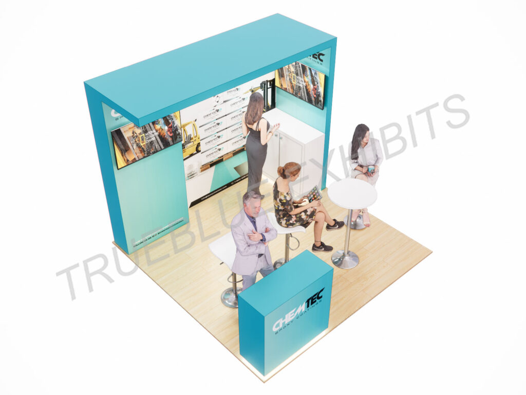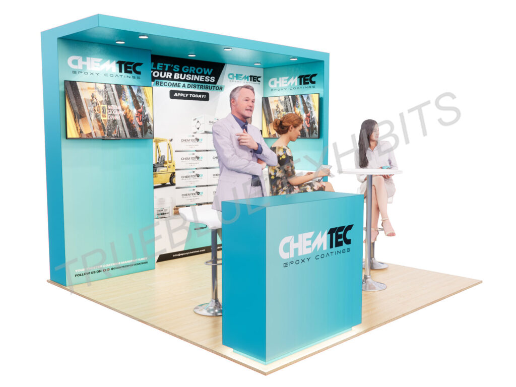 As a 10′ x 10′ trade show booth design company, TrueBlue Exhibits offers our clients turnkey services, which include in-house fabrication, transportation, installation, and dismantle. We bring your 10’ x 10’ trade show booth design ideas to life for all your shows in Las Vegas and across the country. Get in touch with us for a free estimate and consultation.