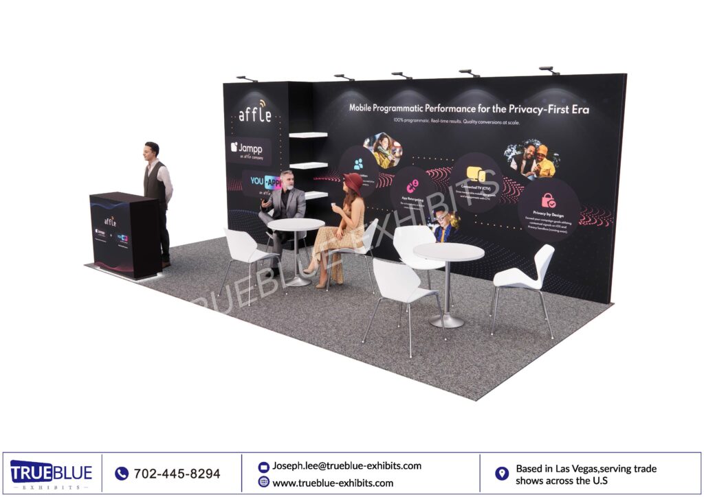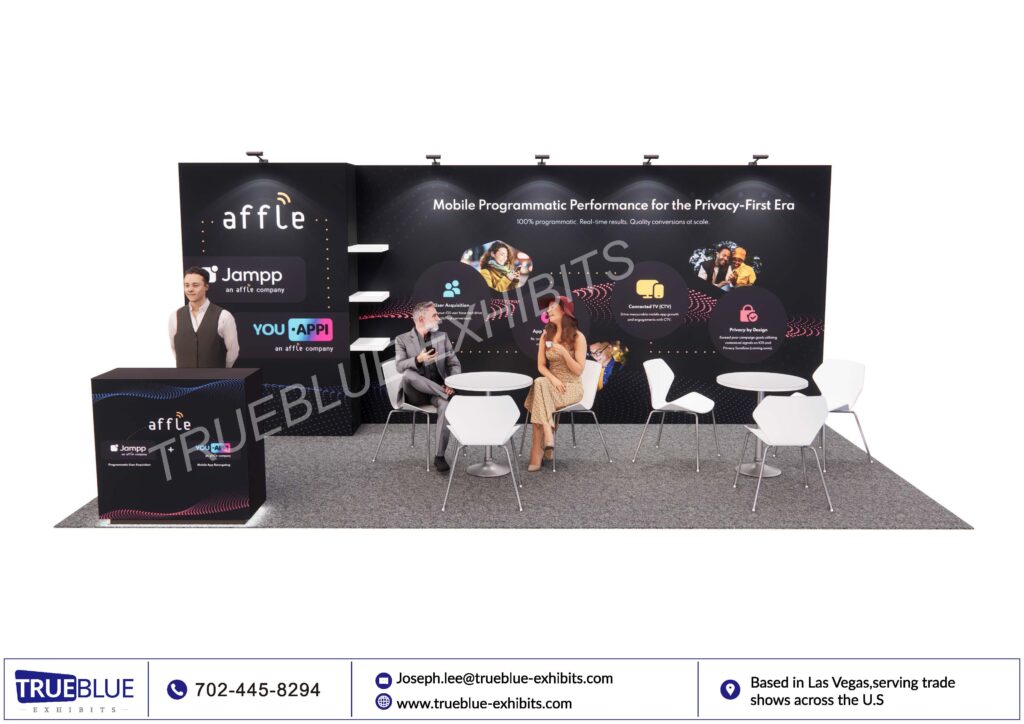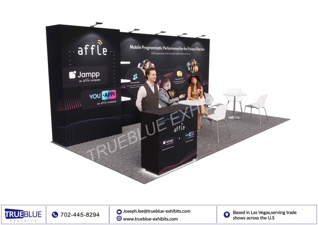 TrueBlue Exhibits offers a standout Youappi booth rental for MAU 2024 in Las Vegas, sized at 10′ x 20′. Elevate your presence at the event with our premium booth, meticulously crafted to attract and engage attendees. Our expert team ensures seamless execution, from concept to installation, allowing you to focus on maximizing your impact. With TrueBlue Exhibits, you’ll enjoy top-notch quality and service, tailored to meet your unique needs and goals. Make a lasting impression at Las Vegas trade show floor with our customzied booth rental solutions tailored to your brand, designed for success. Contact us today to elevate your exhibiting experience.